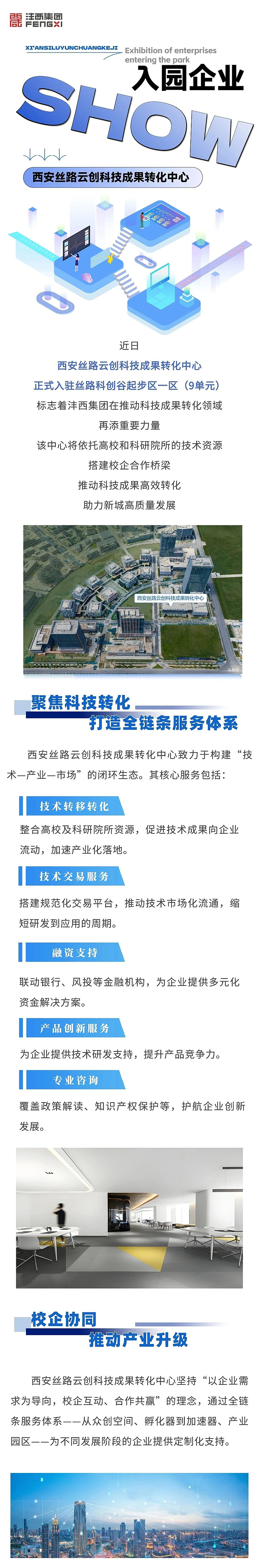 近日,西安絲路云創科技成果轉化中心正式入駐絲路科創谷起步區一區(9單元),標志著西咸新區灃西新城在科技成果轉化領域再添重要力量。該中心將依托高校和科研院所的技術資源,搭建校企合作橋梁,推動科技成果高效轉化,助力企業創新升級。