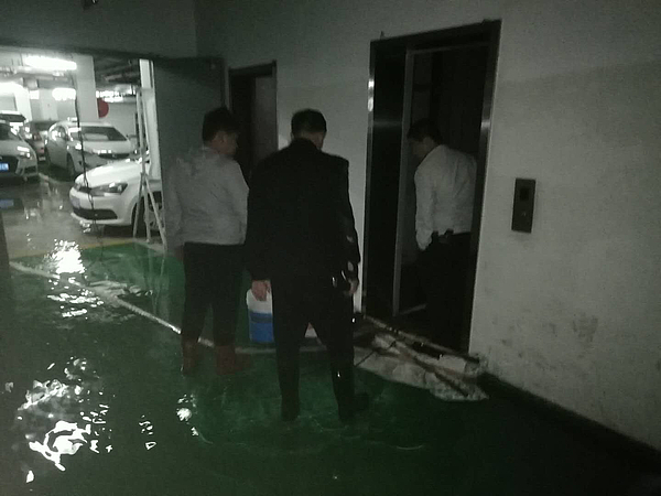 根據(jù)這一方案,現(xiàn)場立即組織實施,緊急采購材料、積極聯(lián)系外協(xié)力量、尋找各種資源一齊發(fā)力,有序展開,保障搶修工作在最短的時間內(nèi)順利進行。同時,為盡早排干地下室積水,公司工程維修人員、保安、保潔人員,包括外協(xié)人員紛紛迎難而上,不怕積水弄濕鞋子和衣服,義無反顧地投入到排水工作中。與此同時,搶修工作也在緊張有序地進行中。