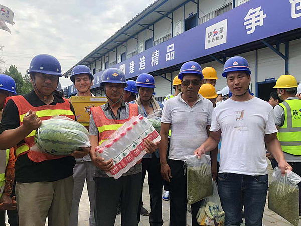為進(jìn)一步加強(qiáng)夏季高溫期間安全生產(chǎn)工作,有效預(yù)防和減少高溫中暑事件,激發(fā)員工愛(ài)崗敬業(yè)的激情,7月26上午,集團(tuán)公司副總經(jīng)理張桂林前往灃河污水廠(chǎng)項(xiàng)目現(xiàn)場(chǎng)看望慰問(wèn)奮斗在一線(xiàn)的員工,為他們送去綠豆、西瓜、藥品等防暑降溫物品。