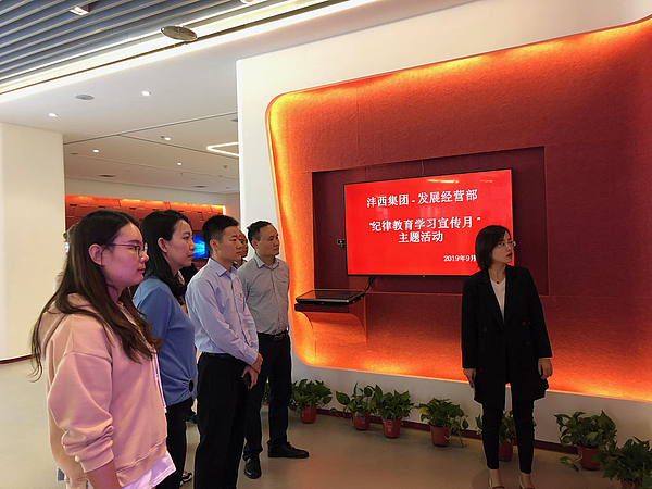 為進(jìn)一步深化紀(jì)律教育,嚴(yán)守黨的政治紀(jì)律和政治規(guī)矩,9月23日下午,發(fā)展經(jīng)營部組織開展“紀(jì)律教育學(xué)習(xí)宣傳月”主題活動(dòng),發(fā)展經(jīng)營部全體員工前往灃西新城紅色會(huì)客廳進(jìn)行參觀。