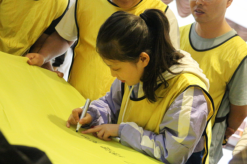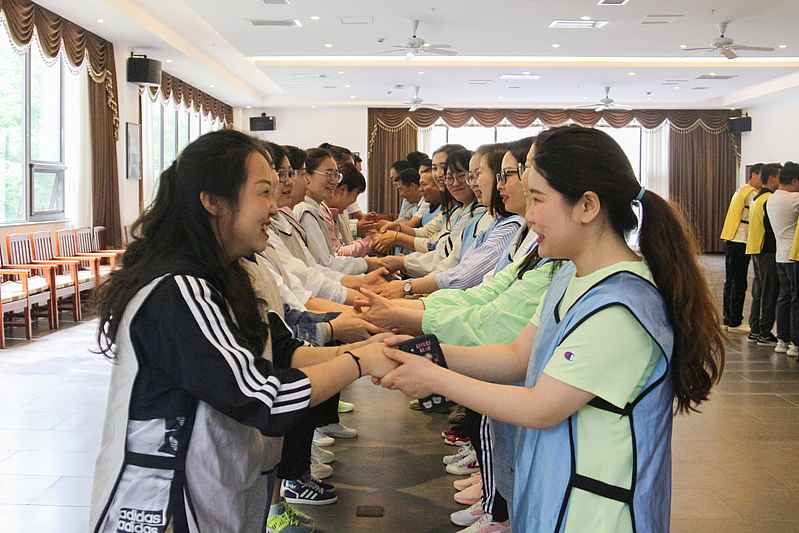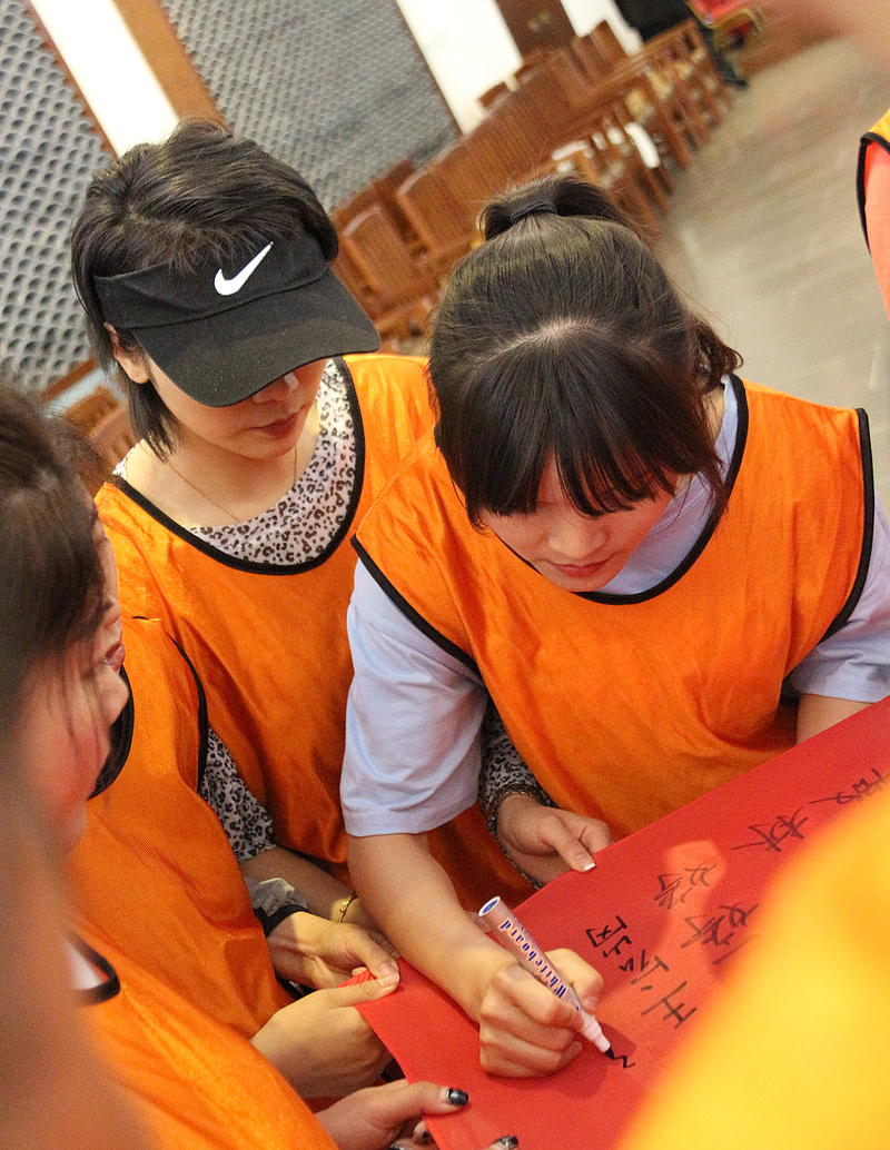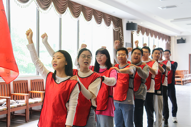 培訓開營儀式后,首先是破冰分組,隨后各項活動循序漸進。小分隊們領取了各自的專屬顏色馬甲,開始寫隊名、唱隊歌,“灃華正茂”隊、“西北狼”隊……各小分隊盡展風采,嘹亮的口號聲此起彼伏。