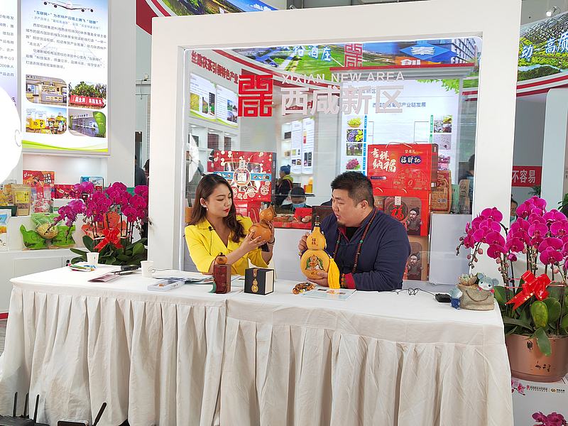 非遺葫蘆——獨特的葫蘆造型、細致的烙畫手法吸引了眾多參觀人員,“妙筆生花”葫蘆、酒葫蘆讓大家愛不釋手。西安市非物質文化遺產保護協會副會長裴正明以線上直播的方式,對綠浪農業公司非遺葫蘆進行了專項產品推介,讓更多人了解了非遺葫蘆的魅力與特色。