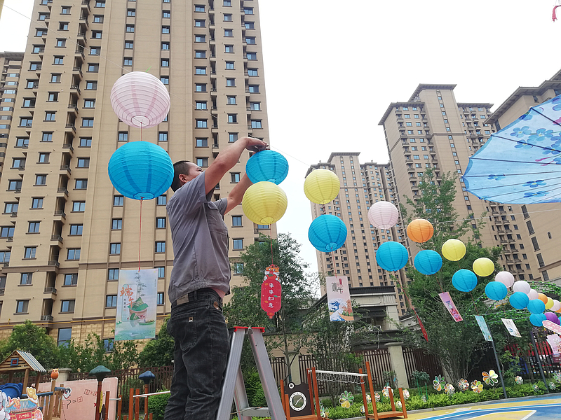 在灃潤和園項目中心,項目工作人員精心為園區的小業主們準備了一場名為“多彩六一粽葉情”的主題文化活動。