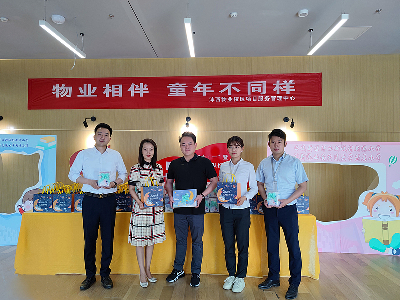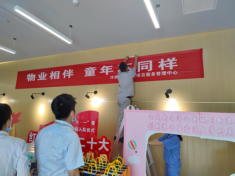 6月1日當天,物業公司校區項目已做好萬全準備。隨著音樂響起,西咸新區灃西新城創新港小學的學生們開始節目表演了,有國風合唱、《祖國有我》視頻觀看等,互動小游戲也花樣百出,灃西物業校區項目還給大家送上馬克筆、寫生本和文具套裝,學生們都高興地說:“都是我們喜歡的!”