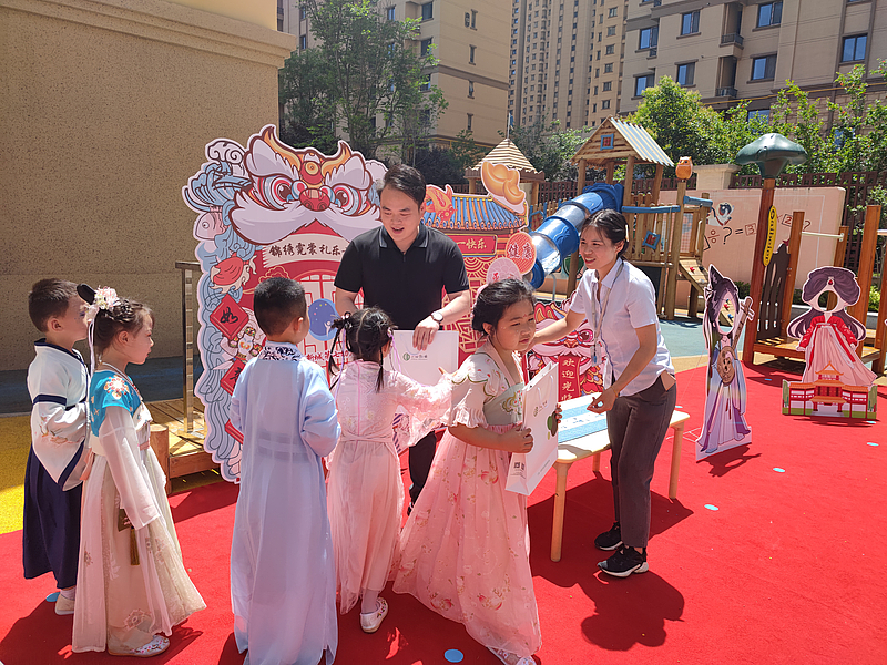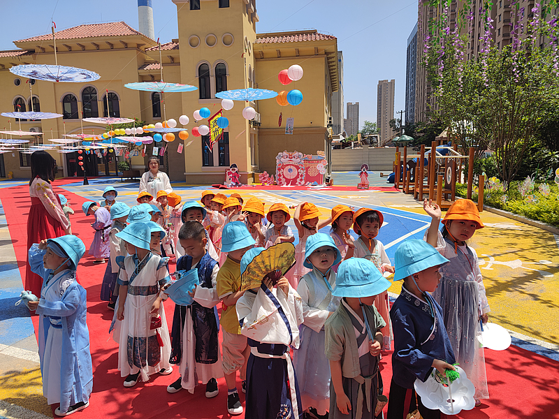 繽紛夏日,精彩六一。灃西第七幼兒園的“古風游園會”也開始了,孩子們都穿著漢服在“集市”里“購物”,有粽子、團扇、糖葫蘆等等,物業校區項目還貼心地為孩子們準備了可愛的遮陽帽,遠遠望去也是一道可愛的風景線。