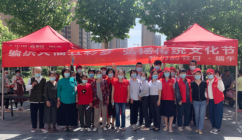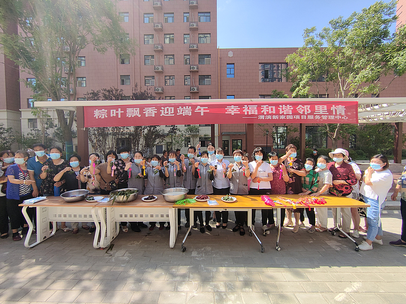 在渭濱新家園的園區(qū)中,小區(qū)的業(yè)主和物業(yè)的工作人員一起卷粽葉,裝糯米,加上幾顆紅棗,左纏右繞,再把繩子系緊,一個個馨香四溢的粽子就包成了。這是渭濱新家園項(xiàng)目中心開展的“粽葉飄香迎端午,幸福和諧鄰里情”包粽子活動?;顒又校蠹夷阕肺亿s比速度、比顏值,活動有說有笑、其樂融融。 隨后,項(xiàng)目中心工作人員將包好的粽子、香囊送給周邊的老人、行動不便的居民,寓意把節(jié)日的溫暖和平安帶到他們身邊。