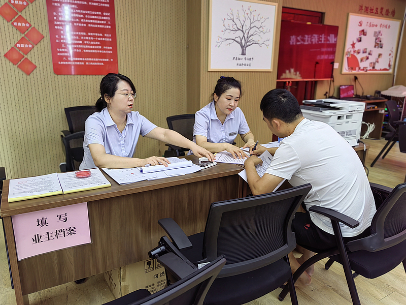 現場簽到、房屋分配、繳納維修基金、填寫業主檔案、系統信息錄入......每個環節都井然有序。高效的背后,是物業公司踐行細節與標準,提升業主收房體驗感的表現。小區大門放置紅色拱門,恭祝業主喬遷之喜;物業前臺懸掛“恭迎二期業主回家”橫幅,營造良好收房氛圍;在單元門口張貼海報,提供暖心服務。每個工作人員也都以飽滿的精神狀態投入工作。“您好,歡迎回家”是交付現場最常聽見的一句話,也是最暖心的一句話,為所有交付業主帶來親切的體驗。