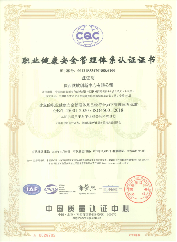 11月22日,陜西微軟創(chuàng)新中心有限公司(以下簡(jiǎn)稱“陜西MIC”)順利取得中國質(zhì)量認(rèn)證中心與國際互認(rèn)聯(lián)盟頒發(fā)的QES管理體系認(rèn)證證書(質(zhì)量管理體系<、環(huán)境管理體系和職業(yè)健康安全管理體系認(rèn)證證書)。此次質(zhì)量管理體系、環(huán)境管理體系和職業(yè)健康安全管理體系認(rèn)證證書的取得,標(biāo)志著陜西MIC科學(xué)化、制度化、標(biāo)準(zhǔn)化管理得到進(jìn)一步提升,為公司經(jīng)營(yíng)生產(chǎn)...