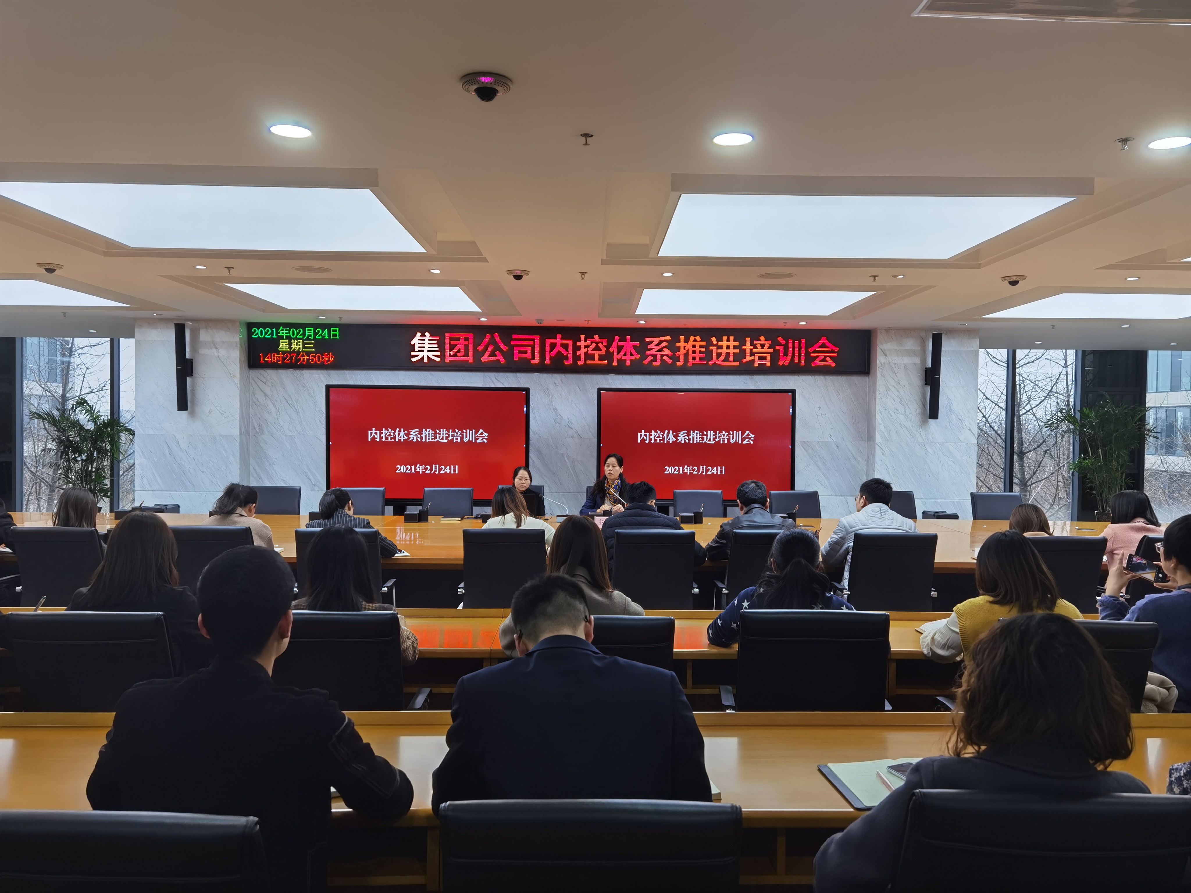 2月24日,審計內控部面向各子公司組織召開集團公司內控體系推進培訓,圍繞內部控制是什么、為什么,怎么做三個維度講解子公司構建內部控制體系的思路、流程和具體操作,為全面推進各子公司內部控制體系建設做好宣貫工作。灃西集團各子公司員工代表共計30余人參加。