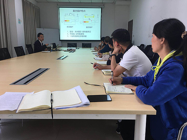為不斷提高員工綜合能力及專業知識水平,加強員工對燃氣鍋爐供暖系統、節能措施等技術的了解與掌握,4月16日上午,灃西新城能源公司舉辦燃氣鍋爐專業技術培訓會,特邀浙江力聚熱水機有限公司胡松虎工程師對公司員工進行系統培訓。